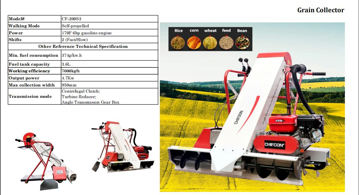 This machine is widely used in the collection,gathering and bagging virous kinds of cereal granules sun-dried on the flat ground such as paddy rice,beans,seeds,maize,wheat,sesame etc. It can help an operator save more time and manpower,meanwhile,also reduce the physical strength putout of an operator. so it has been welcomed by farmers.